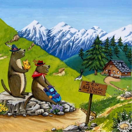 Carte de correspondance Marmottes Zen altitude - Christine Donnier - Éditions Titi Pinson